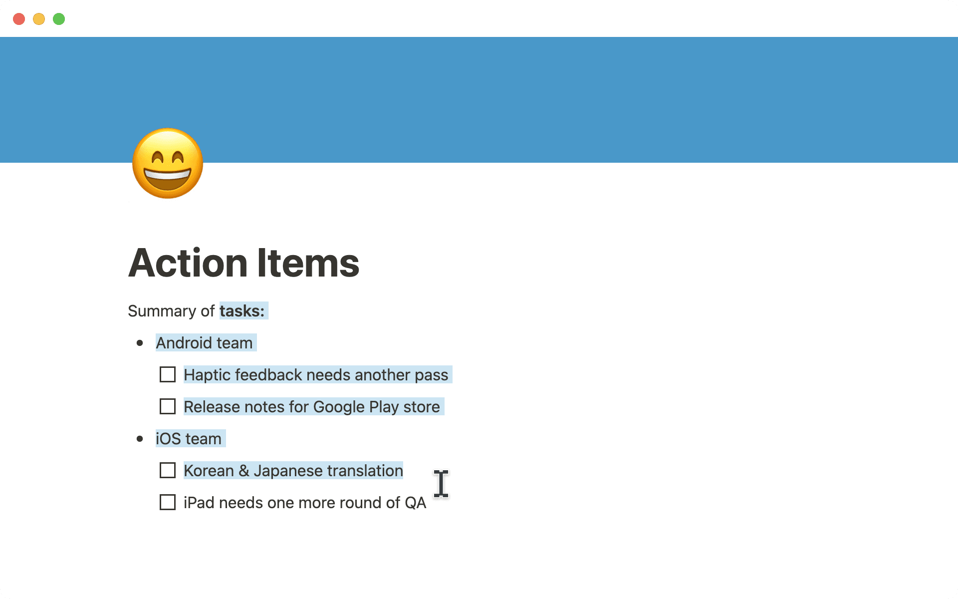 On mobile: Now you can select or copy/paste multiple items at once! Double tap to select text, and drag your selection to include content across multiple blocks.